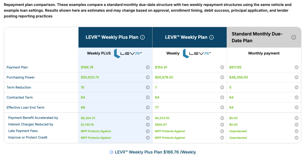 LEVR helps shift the conversation away from “What monthly payment scares me least?” and toward “What repayment path helps me afford the vehicle I really want and keep it in a healthier way?”